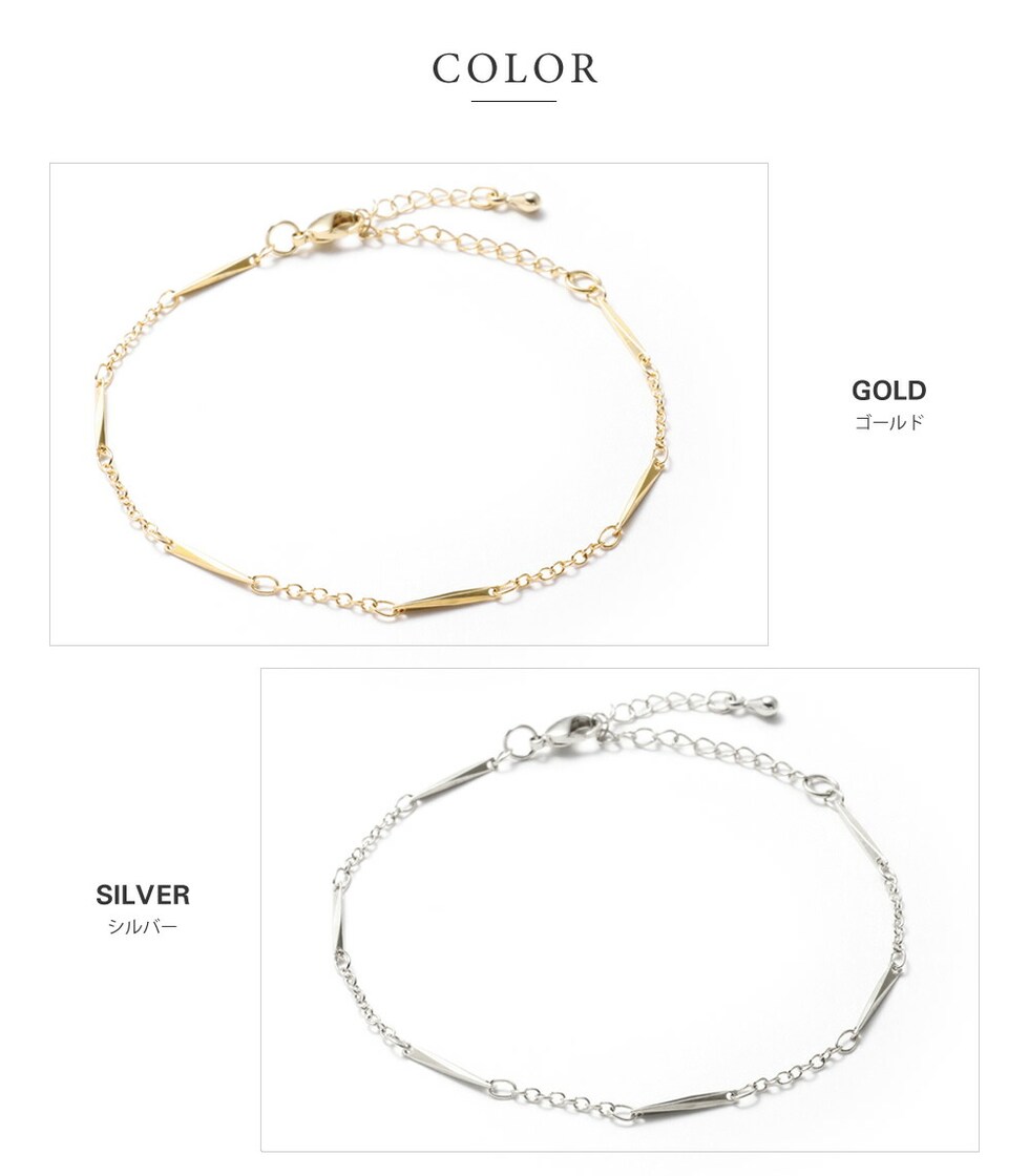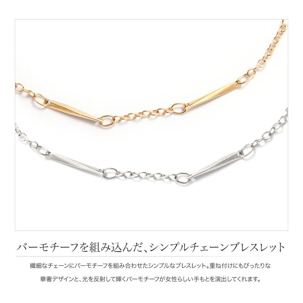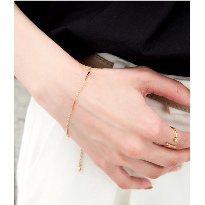 繊細なチェーンにバーモチーフを組み合わせたシンプルなブレスレット。