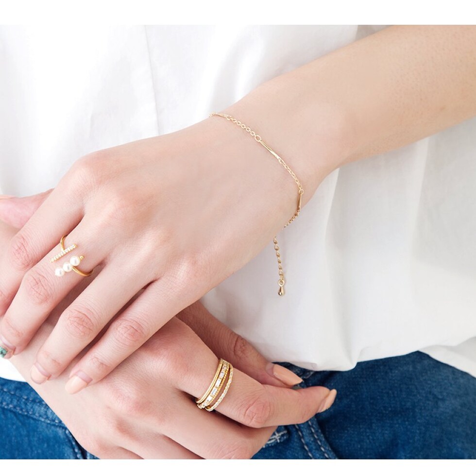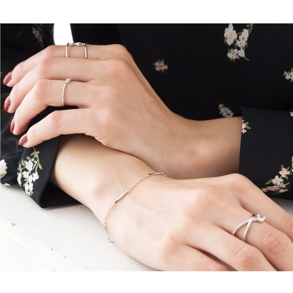 重ね付けにもぴったりな華奢デザインと、光を反射して輝く