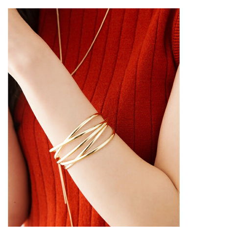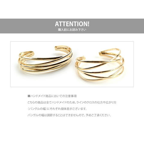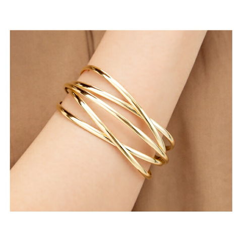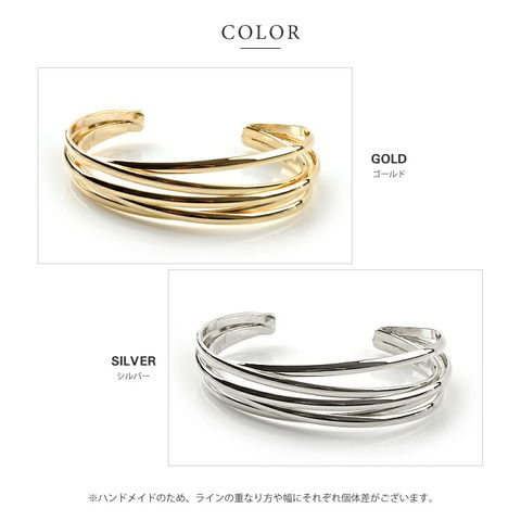 丸みを帯びたメタルラインが5本のクロスバングルは、