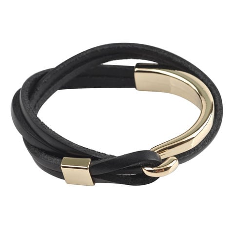 多重レザーと流れるような形のメタルフックが存在感をプラスするブレスレット。手元のアクセントにピッタリな5色展開でお好みに合わせてお選び頂けます。サッと着けるだけでこなれた印象に仕上がるひと品。