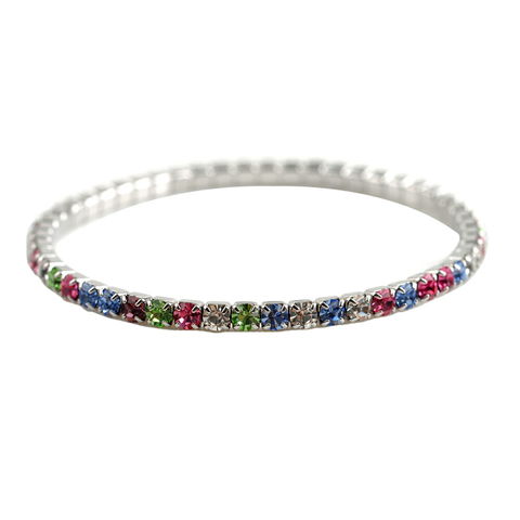 ブレスレット レディース 40色 テニス ラインストーン ビジュー クリアー マルチカラー cream dot ゆうパケット [ミックスJ_シルバー]