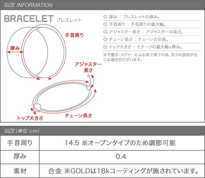 手首周り:14.5cm ※オープンタイプのため調節可能