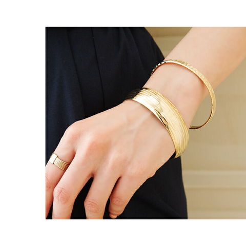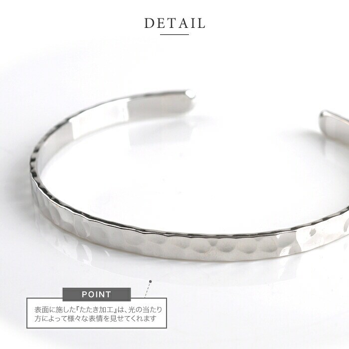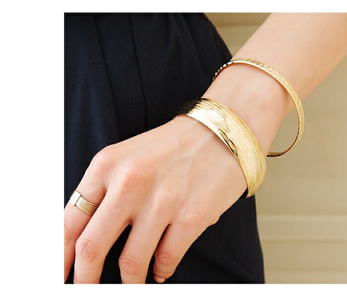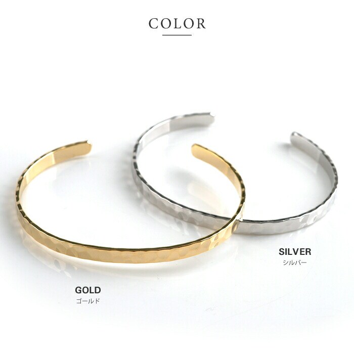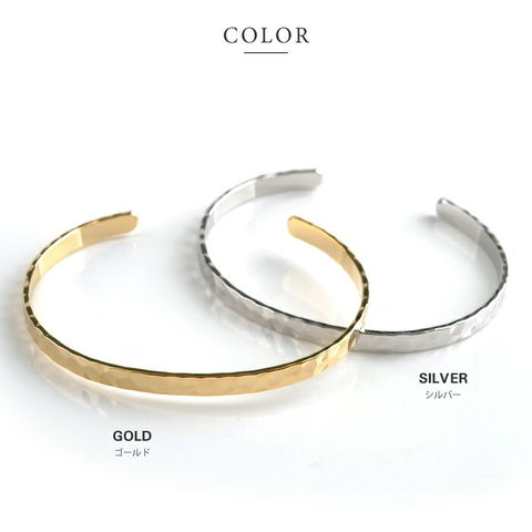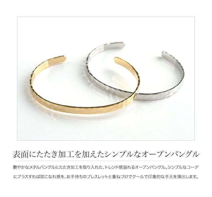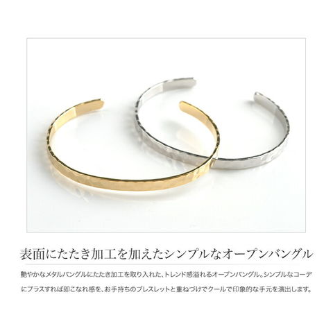 艶やかなメタルバングルにたたき加工を取り入れた、トレンド感溢れるオープンバングル。