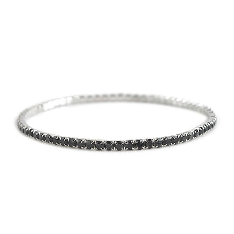 ラインビジューを規則正しく並べたアンクレットは、伸縮性をもたせ着脱しやすさに配慮しています。着けるだけで上品さをプラスしてくれる華奢なデザインが足元で煌めき、重ね付けもおすすめです。