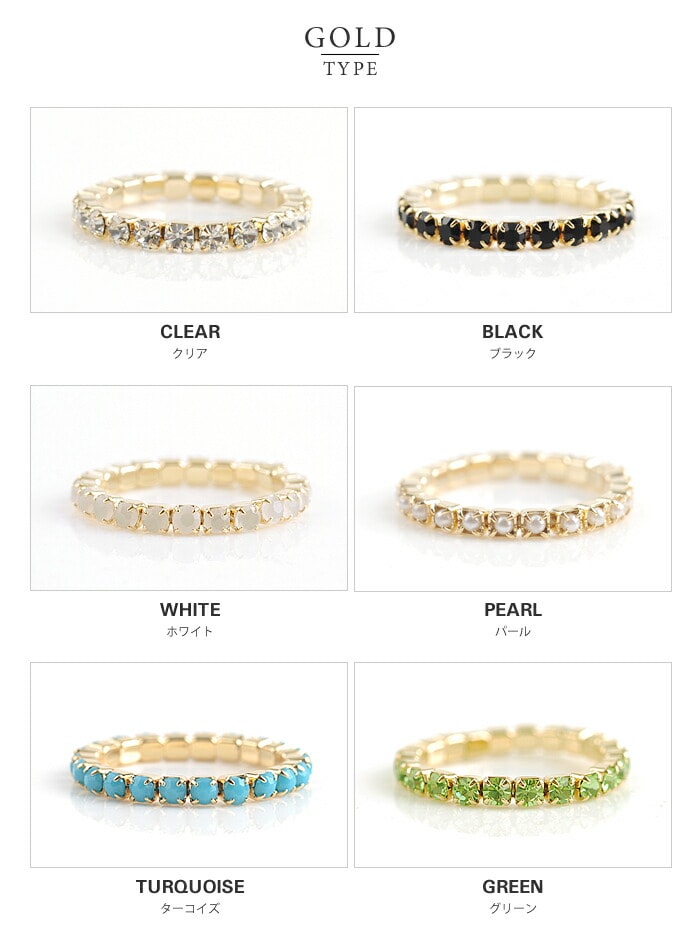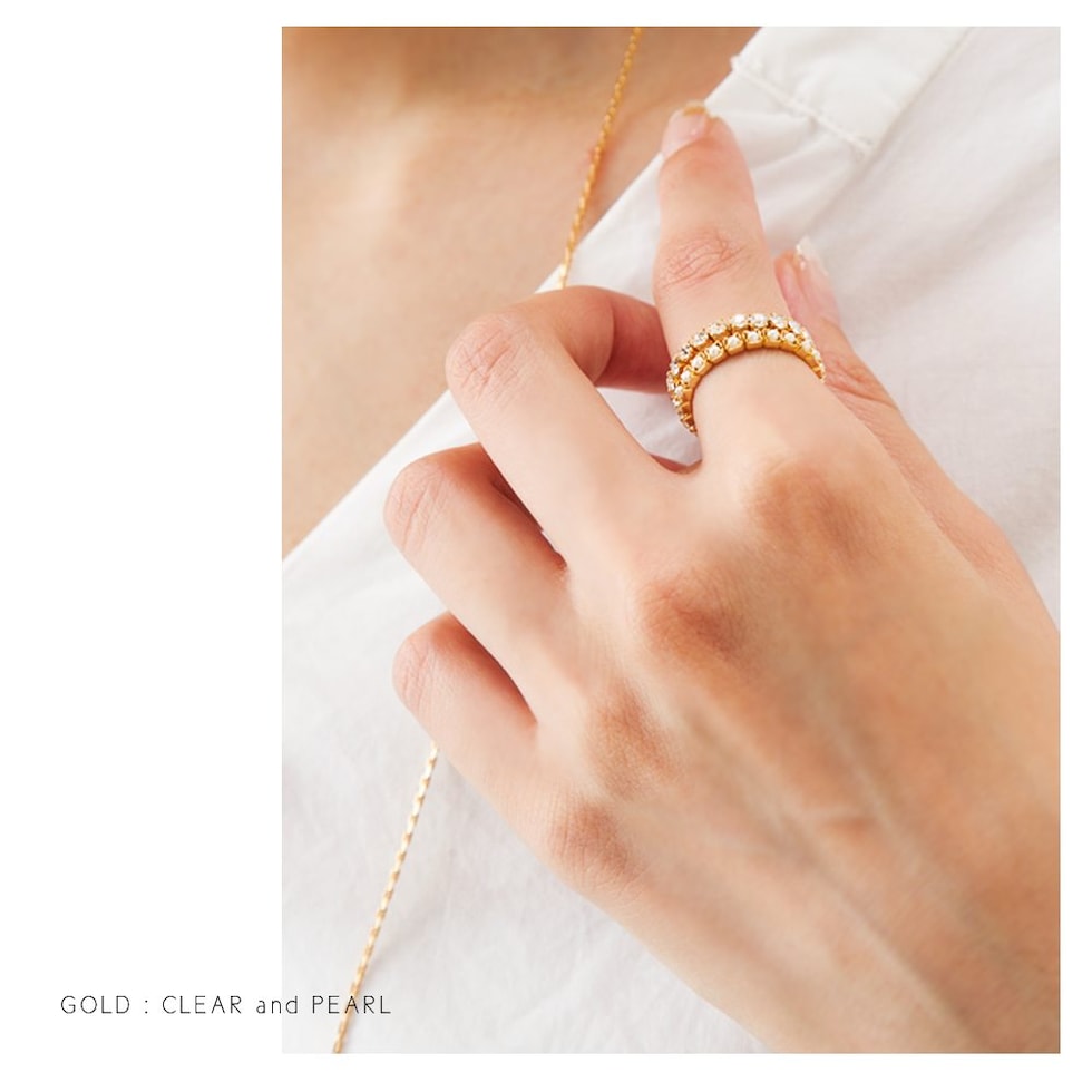 リング 指輪 レディース テニスリング ワイヤーゴム フリーサイズ ビジュー パール クリアー ジュエリー cream dot ゆうパケット [ミックスE_ゴールド]