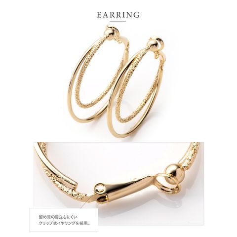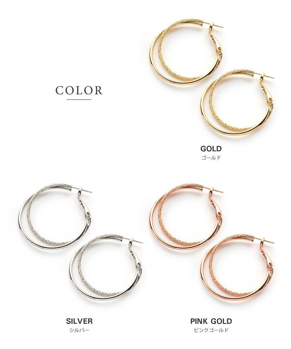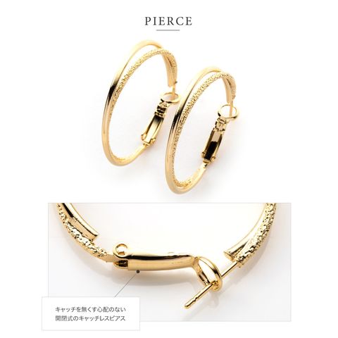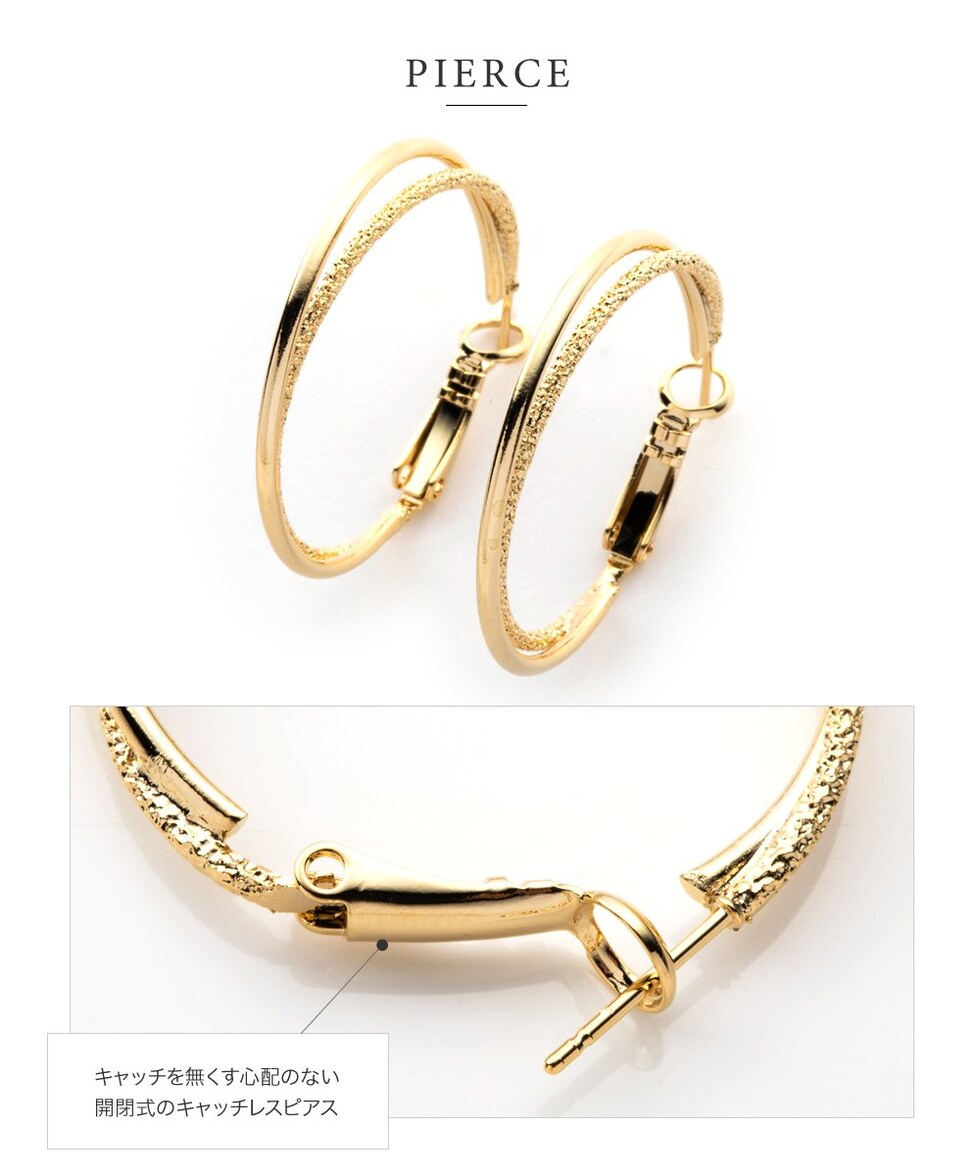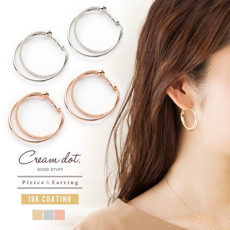 ピアス イヤリング 金属アレルギー ニッケルフリー レディース フープ キャッチレス 開閉式 2連 レイヤード クレッセント cream dot ゆうパケット [ピンクゴールド_ピアス]