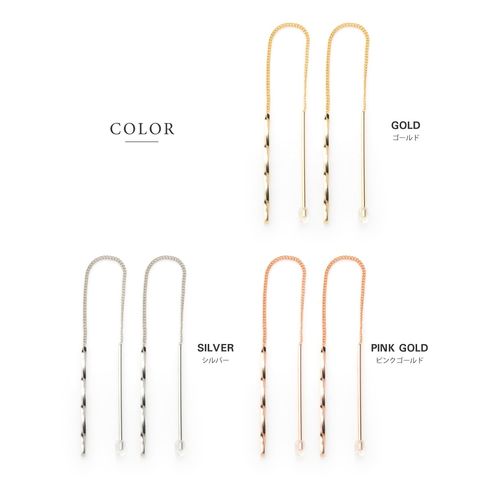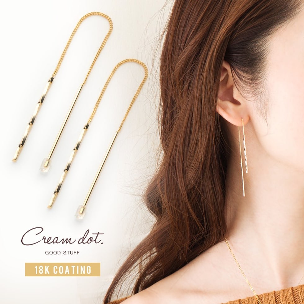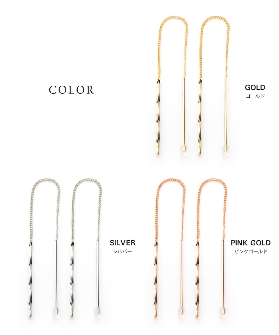 ピアス 金属アレルギー ニッケルフリー レディース アメリカン ロング チェーン 揺れる ひねり cream dot ゆうパケット [ピンクゴールド_ワンサイズ]