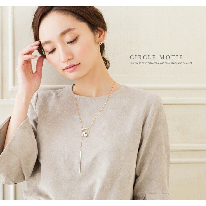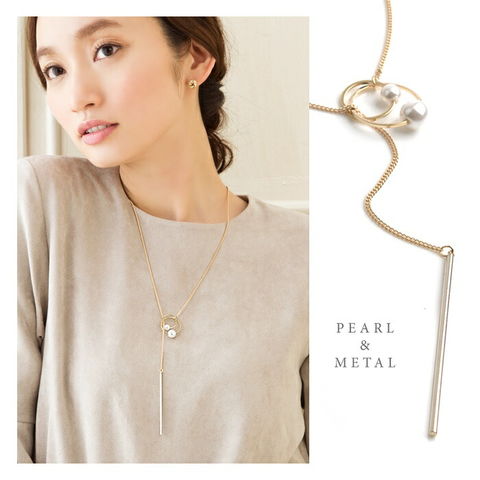ロングY字ネックレス。チェーンをスライドさせることでバランスや