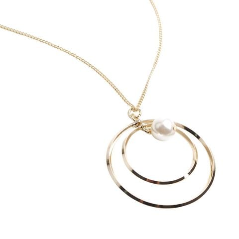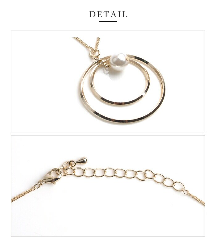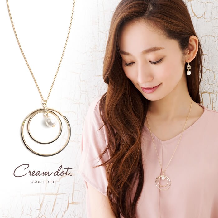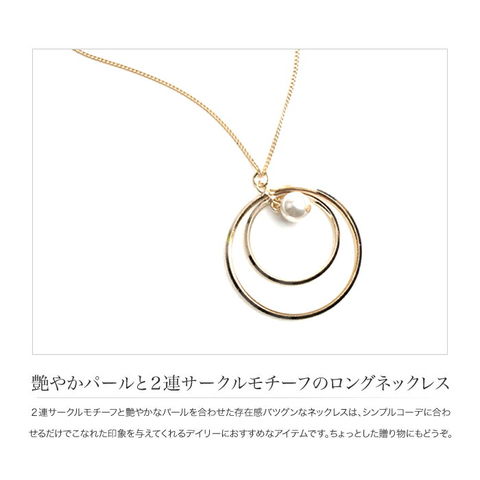 ネックレス レディース 2連サークル パール メタル ロング モダン アクセサリー ジュエリー cream dot ゆうパケット [ゴールド_ワンサイズ]