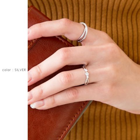正統派大人可愛いノーブルなデザインの、3粒ビジュー煌めくクラシカルリングは、さりげない主役としての ワンポイント使いも、