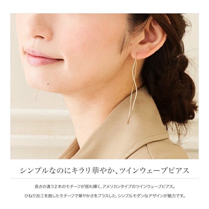 ツインウェーブピアス。ひねり加工を施したモチーフで