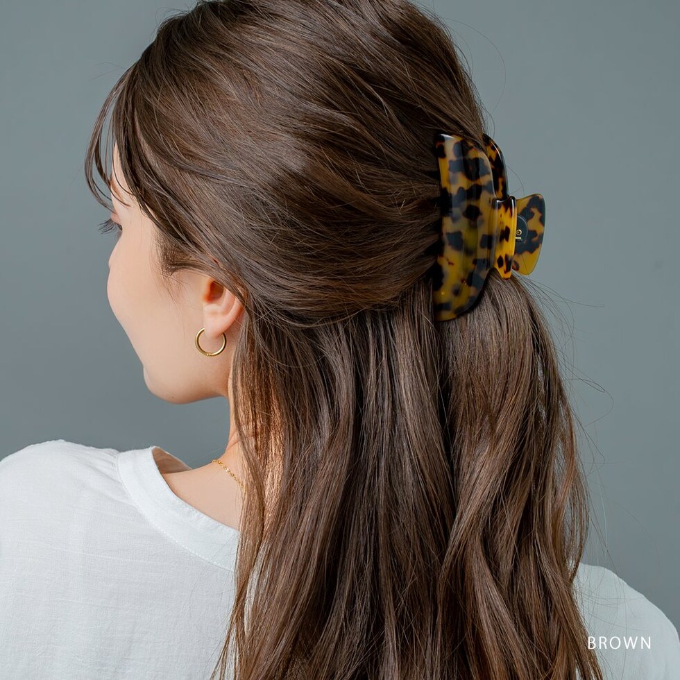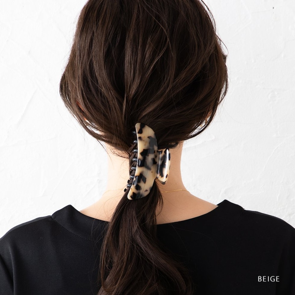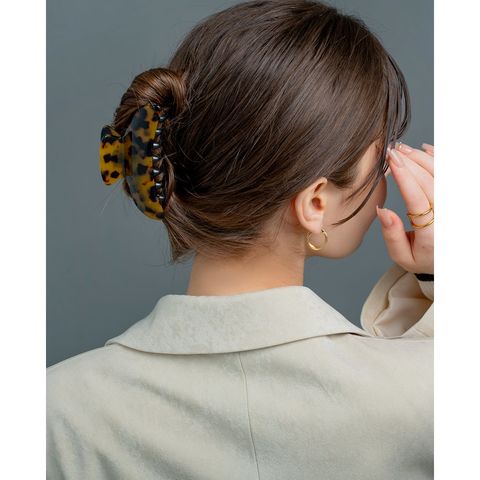 艶やかな光沢と落ち着いた色合いが女性の魅力を引き立たせる、べっ甲風大きめバンスクリップ。挟むだけで簡単にヘアスタイルがまとまる便利アイテムで、2重の台座のクリップなのでホールド力もバッチリです。