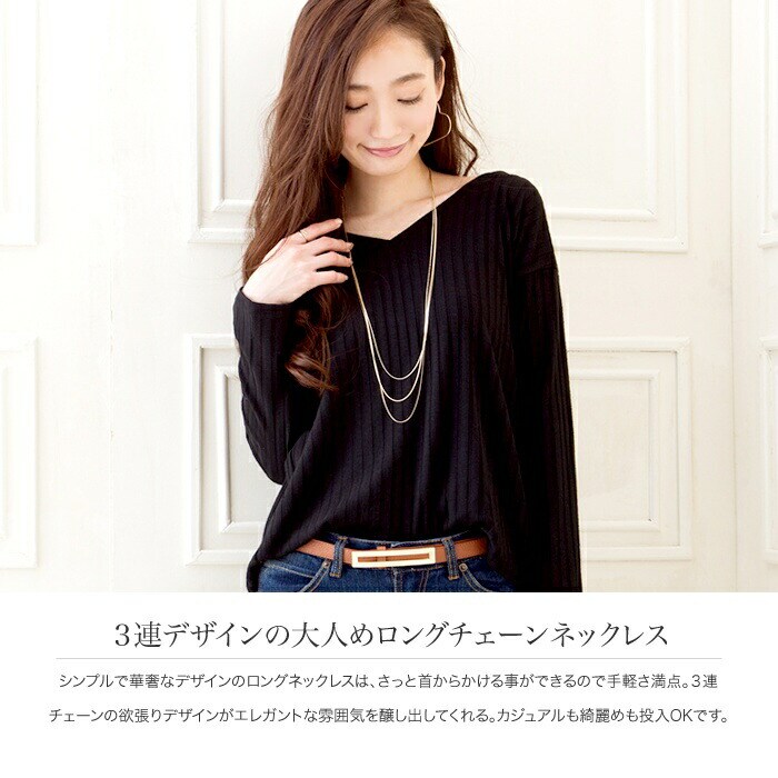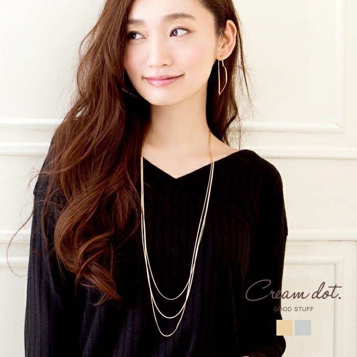 ネックレス レディース 3連 チェーン アクセサリー ジュエリー ロング華奢 cream dot ゆうパケット [シルバー_ワンサイズ]
