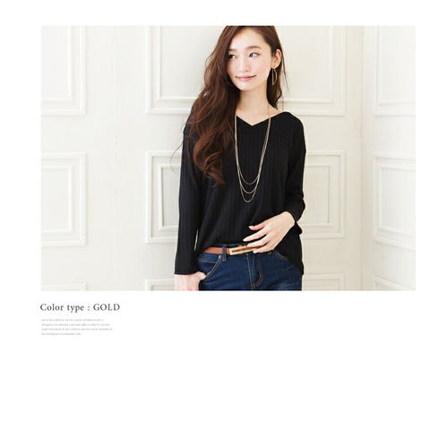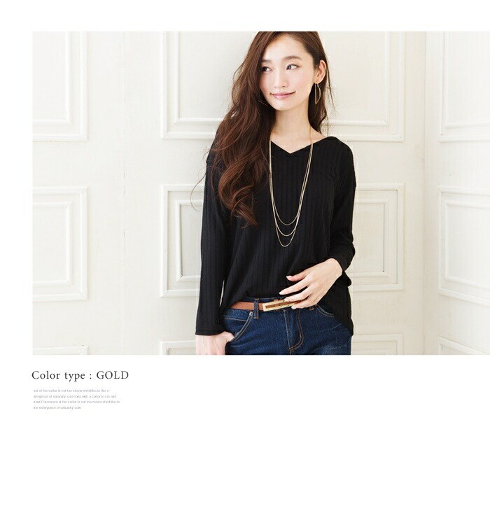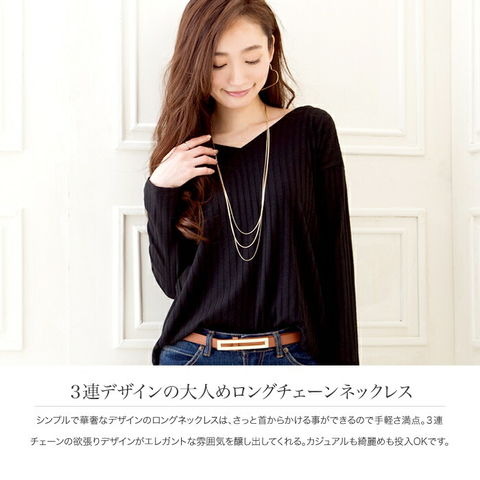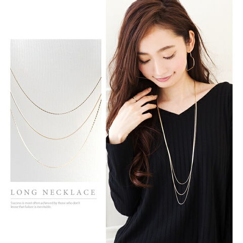 シンプルで華奢なデザインのロングネックレスは、さっと首からかける事ができるので手軽さ満点。