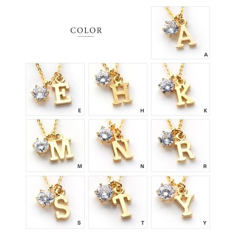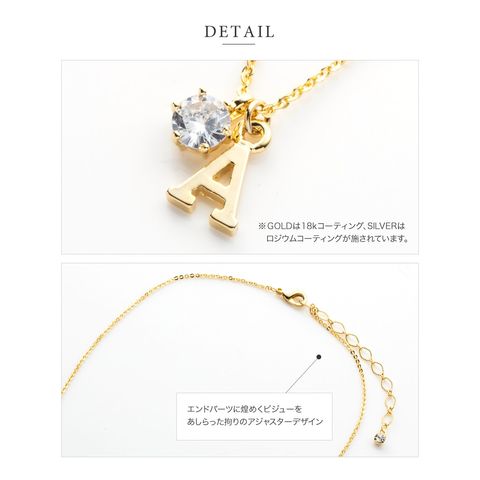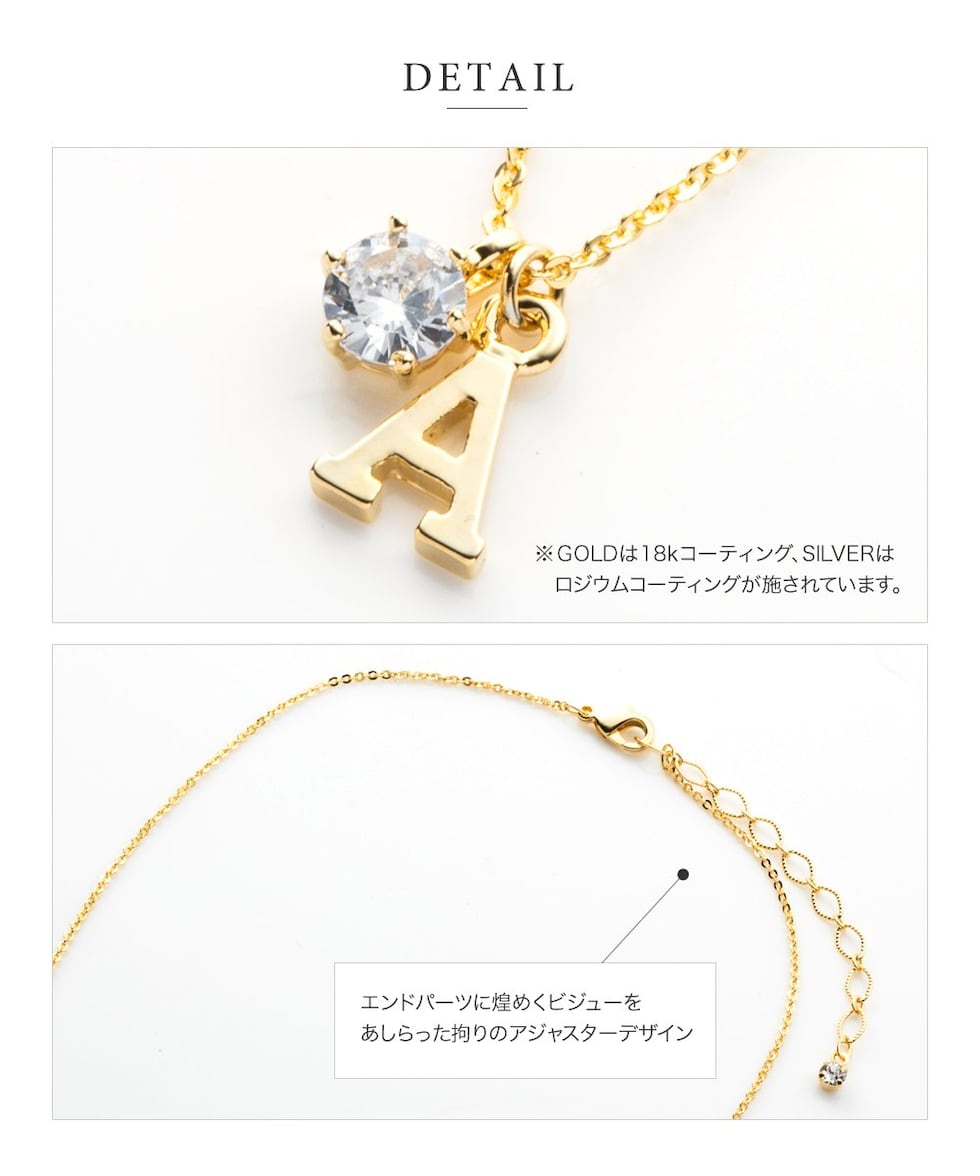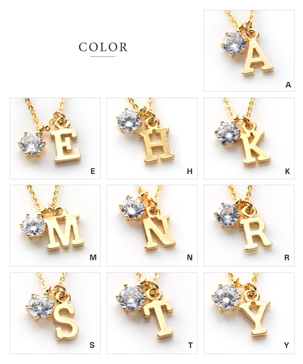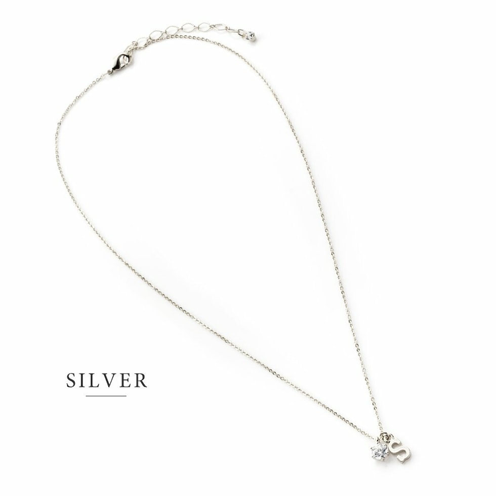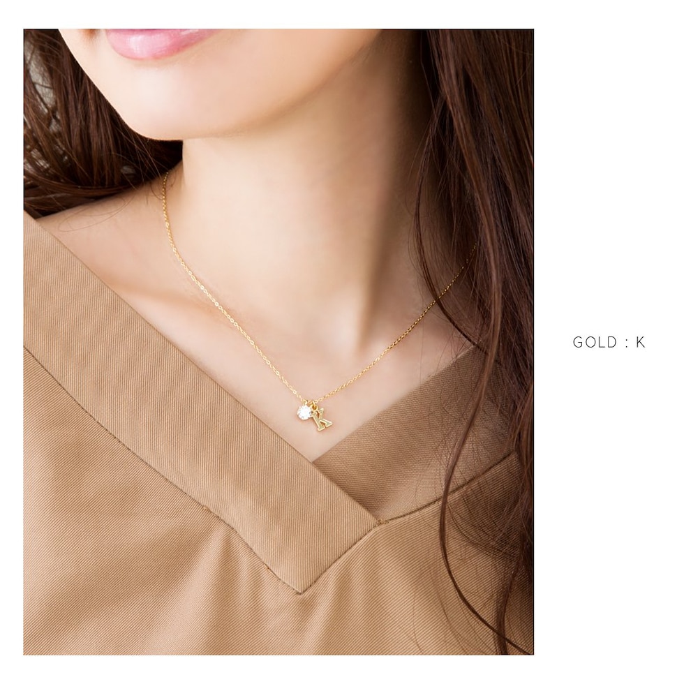 アルファベットのモチーフと一粒ビジューが可愛い、イニシャルネックレス。