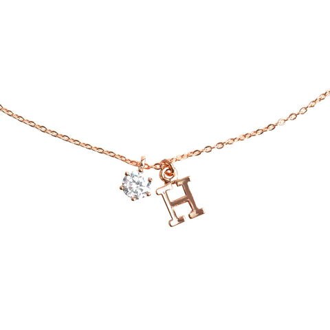 アルファベットのモチーフと一粒ビジューが可愛い、イニシャルネックレス。