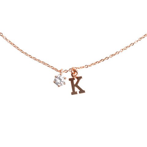 アルファベットのモチーフと一粒ビジューが可愛い、イニシャルネックレス。