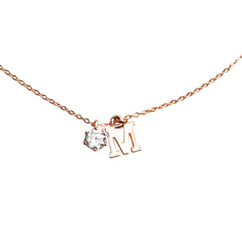 アルファベットのモチーフと一粒ビジューが可愛い、イニシャルネックレス。