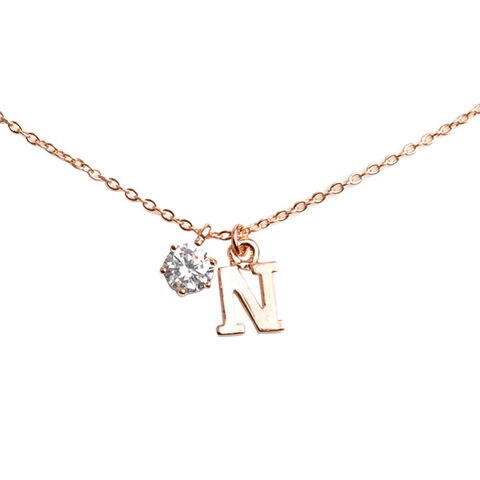 アルファベットのモチーフと一粒ビジューが可愛い、イニシャルネックレス。