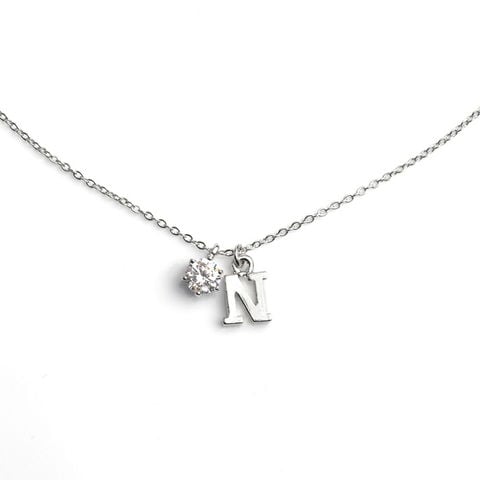 アルファベットのモチーフと一粒ビジューが可愛い、イニシャルネックレス。