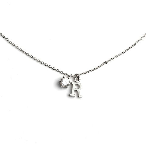 アルファベットのモチーフと一粒ビジューが可愛い、イニシャルネックレス。