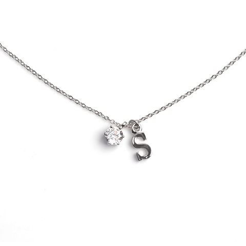 アルファベットのモチーフと一粒ビジューが可愛い、イニシャルネックレス。