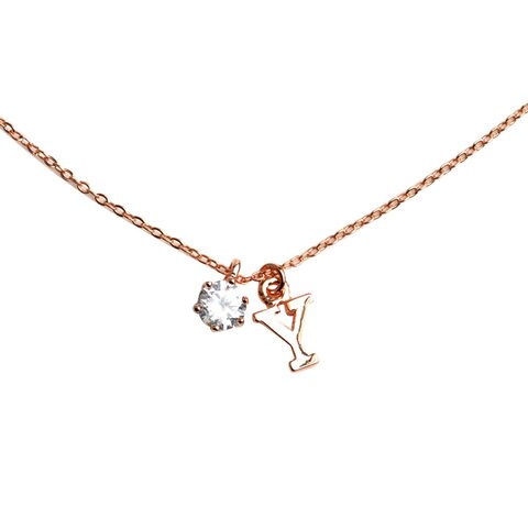 ネックレス レディース イニシャル ジルコニア アジャスター 繊細 プチ アクセサリー ショート cream dot ゆうパケット [ピンクゴールド_Y]