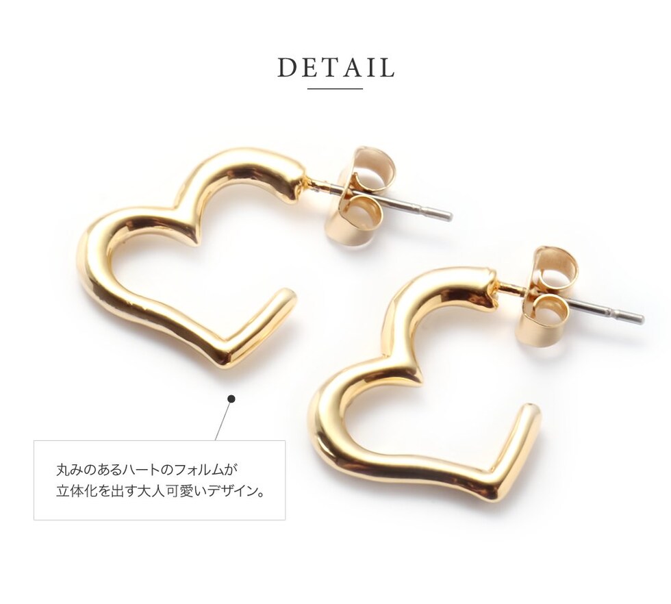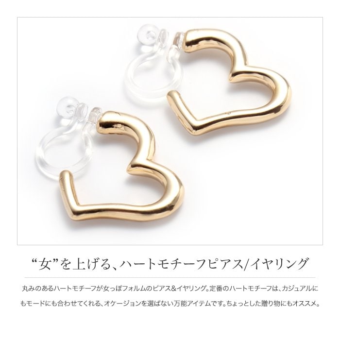 丸みのあるハートモチーフが女っぽフォルムのピアス&イヤリング。