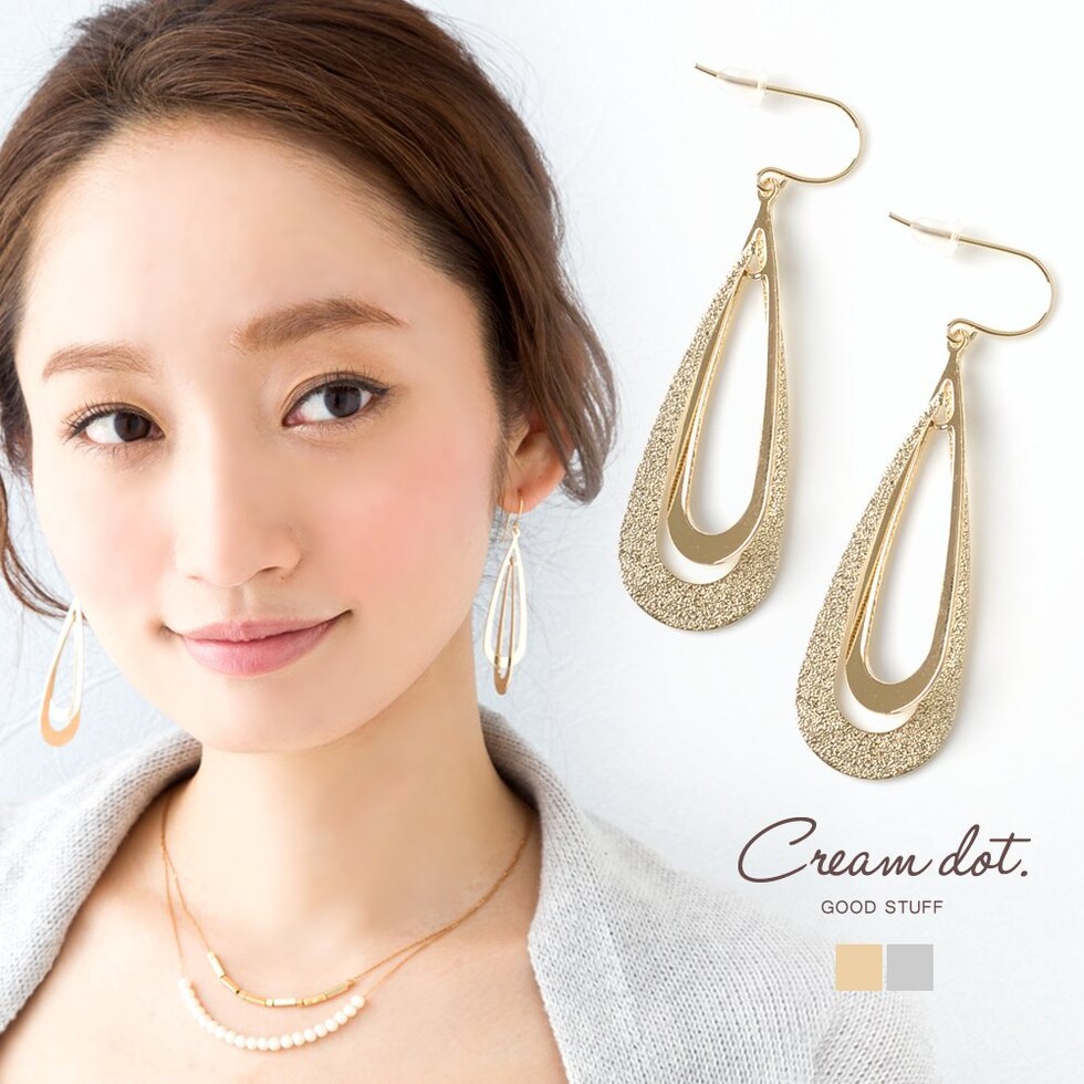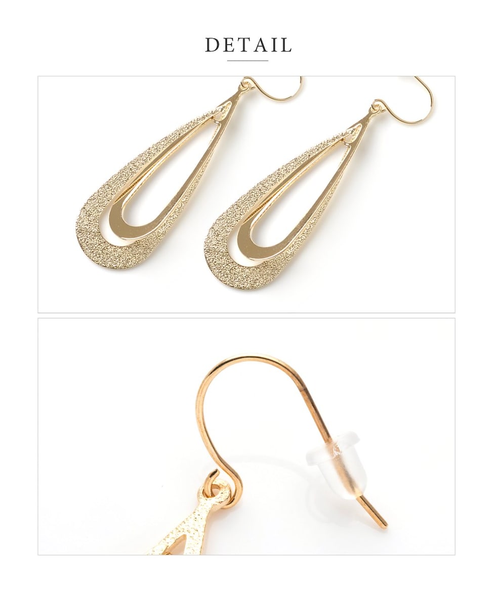 ピアス 金属アレルギー ニッケルフリー レディース フック ニッケルフリーポスト ドロップフレーム 大ぶり スターダスト メタル ドロップ 縦長 アクセサリー cream dot ゆうパケット [ゴールド_ワンサイズ]