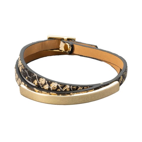 ブレスレット 金属アレルギー ニッケルフリー レディース リアルレザー 本革 PUレザー 合皮 メタル 2連 重ねづけ パイソン cream dot ゆうパケット [B:ベージュ_フリーサイズ]