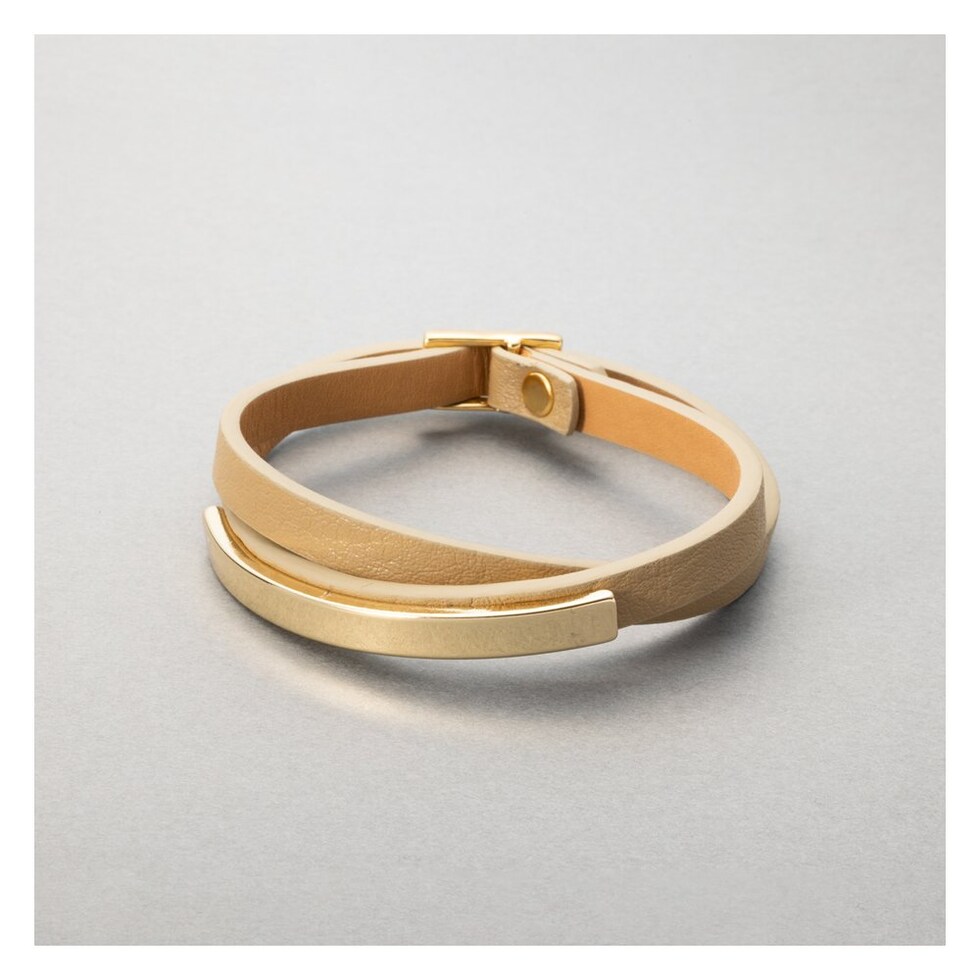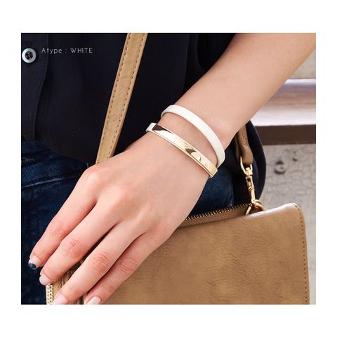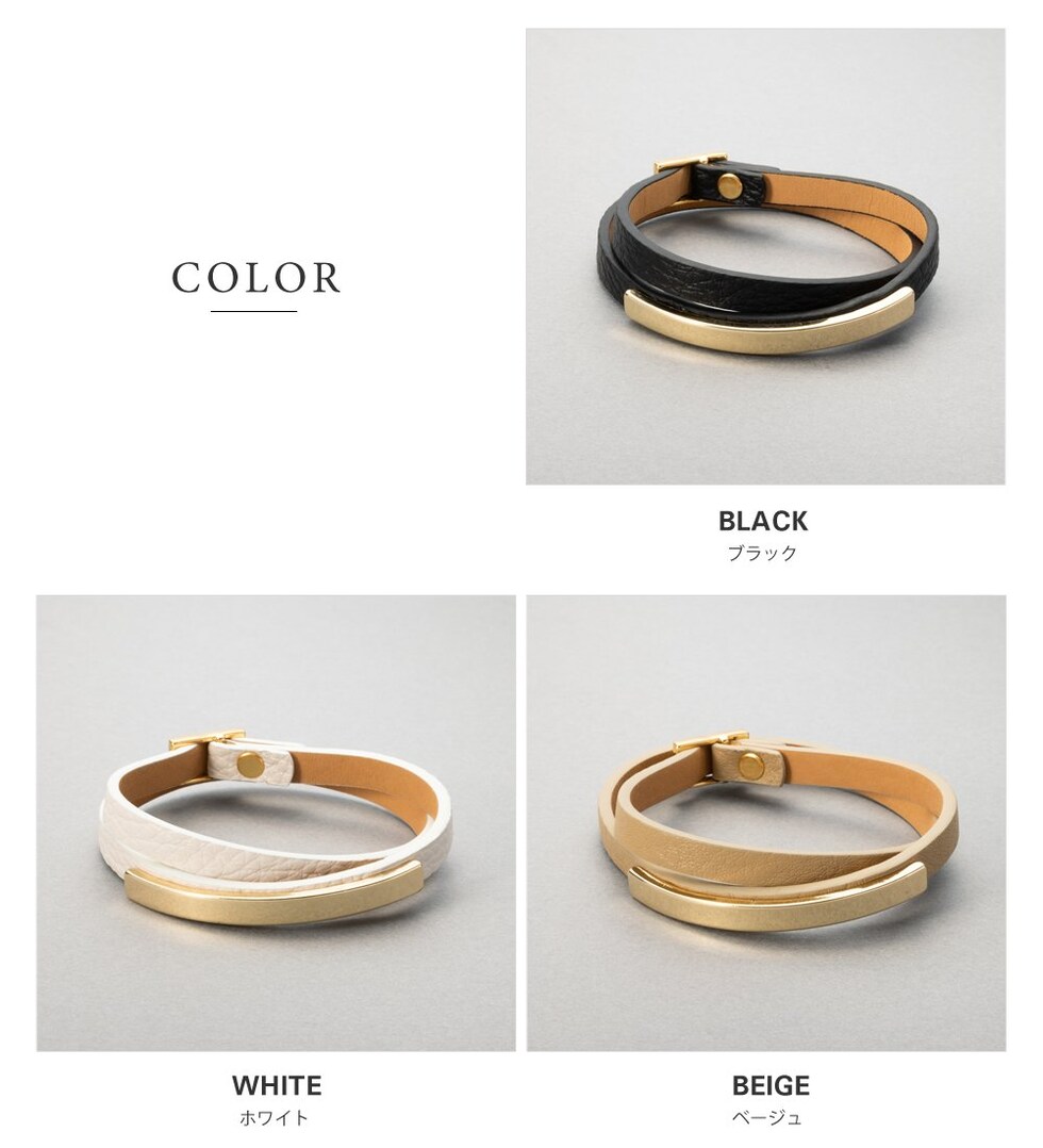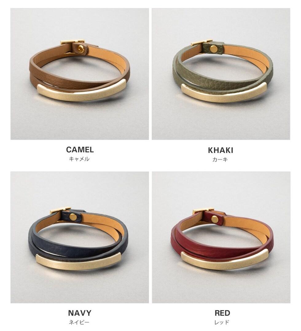 相性抜群のメタルプレートとレザーの組み合わせが知的な印象を与える、2連ブレスレットが登場。
