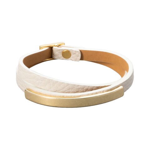 相性抜群のメタルプレートとレザーの組み合わせが知的な印象を与える、2連ブレスレットが登場。