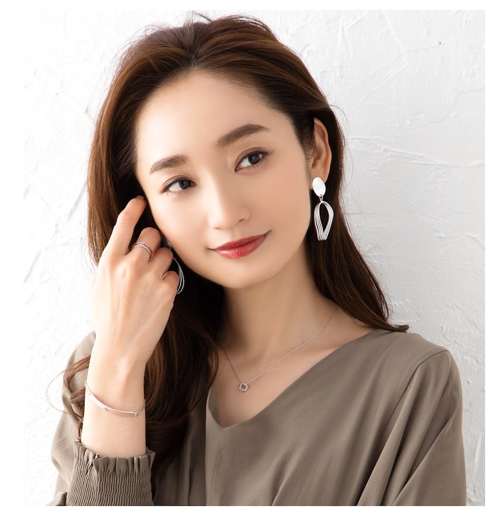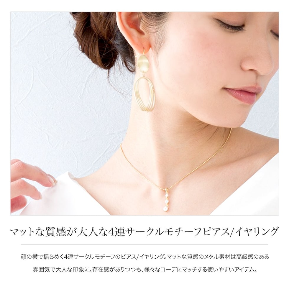 顔の横で揺らめく4連サークルモチーフのピアス/イヤリング。