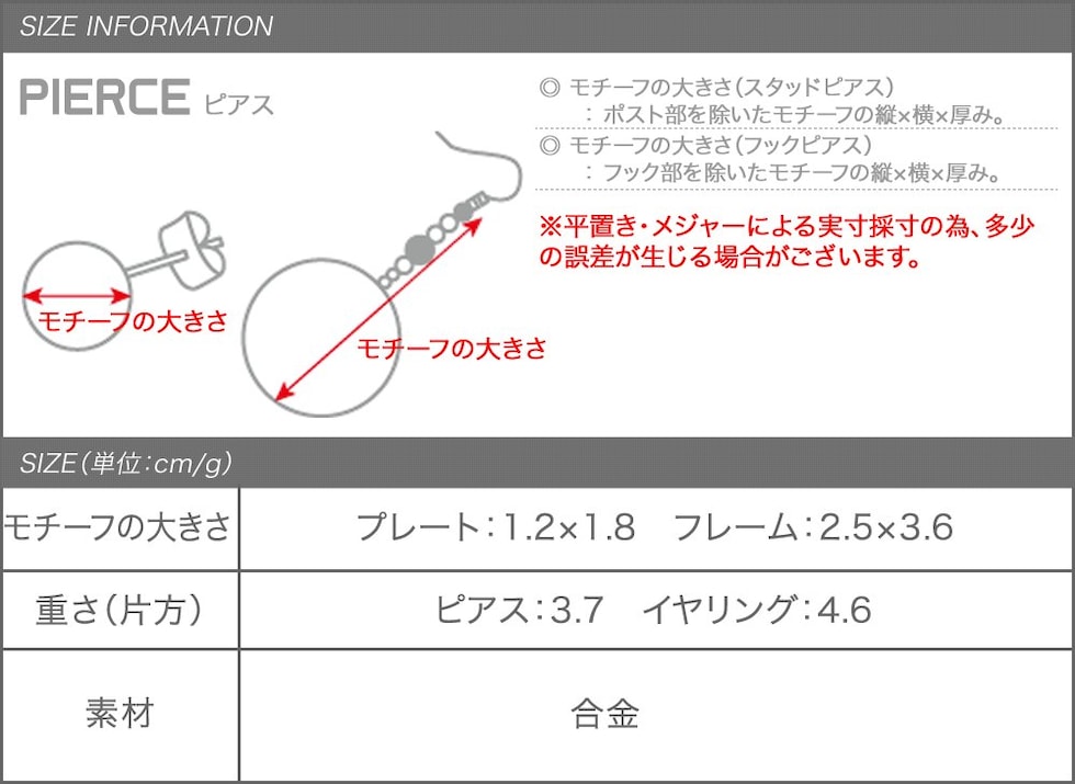 片方 ピアス:3.7g イヤリング:4.6g