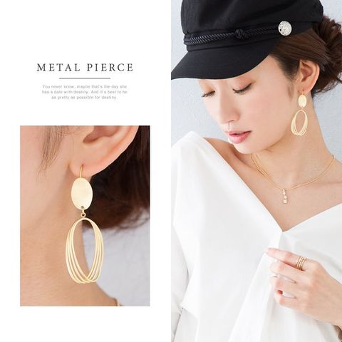 ピアス イヤリング レディース 大ぶり 揺れる ネジ式 シリコンキャッチ フック マット メタル 四重 4重大人 cream dot ゆうパケット [シルバー_ピアス]