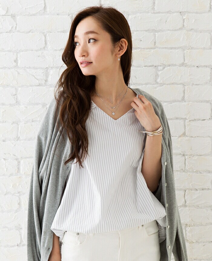 耳元でビジューが揺れる、シンプルで使いやすいデザインのイヤリング。