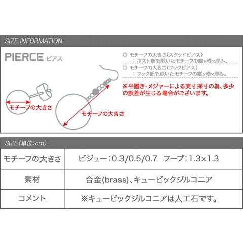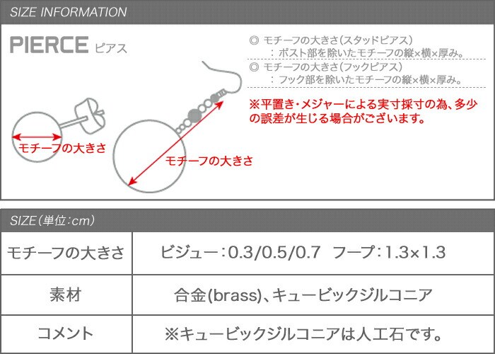 モチーフの大きさ:ビジュー:0.3cm/0.5cm/0.7cm フープ:1.3cm×1.3cm