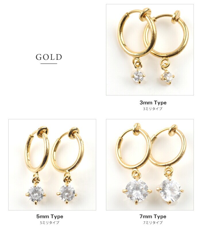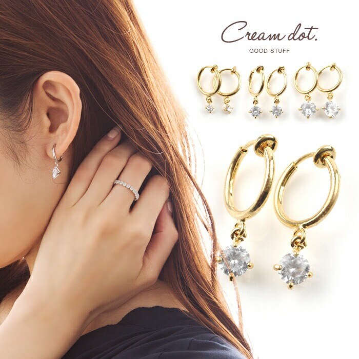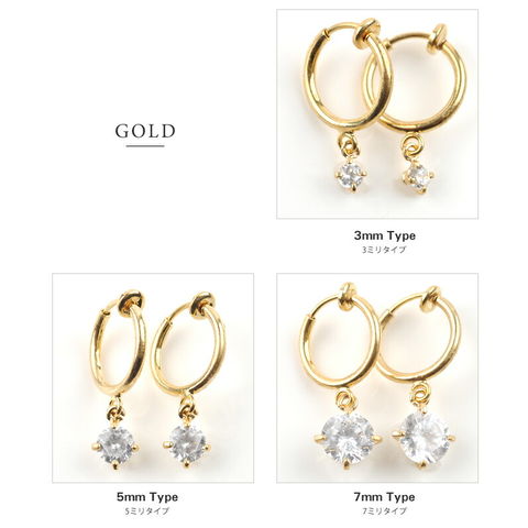 ピアス レディース 3タイプ バネ式 ちょい揺れる 一粒ジルコニア ビジュー 小ぶり 小さめ cream dot ゆうパケット [ゴールド_7mm]