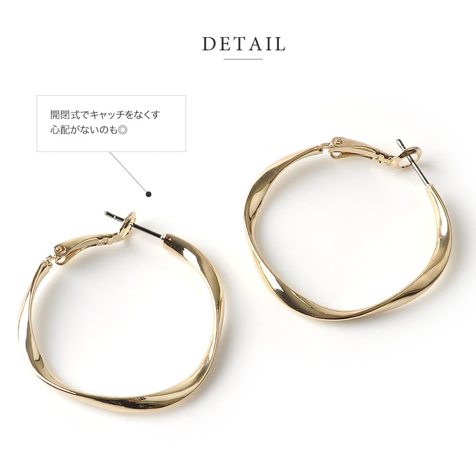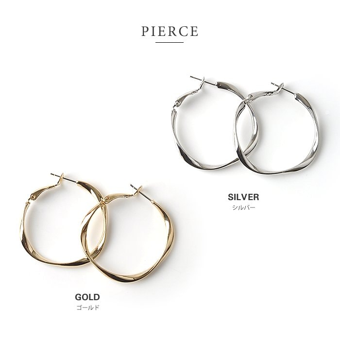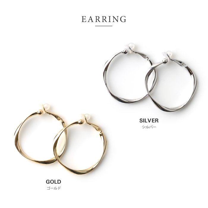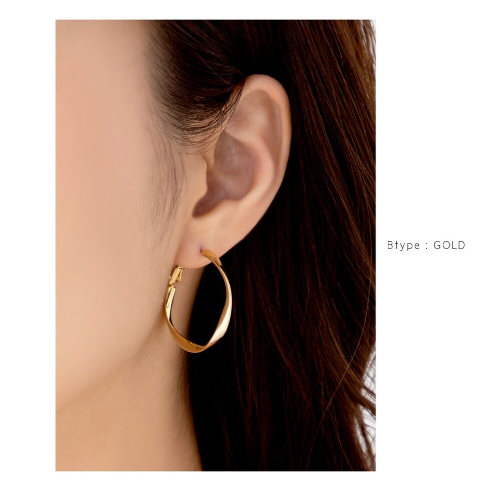 フープを捻ったシンプルお洒落なデザインが大人っぽい、選べる2サイズのピアス/イヤリング。
