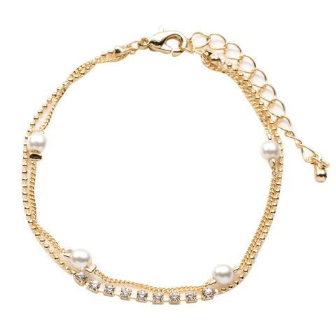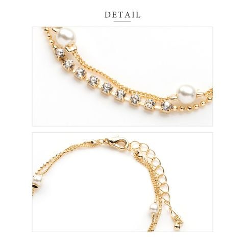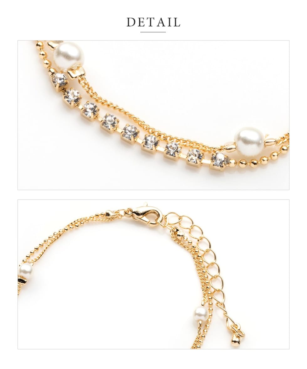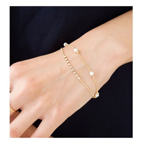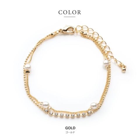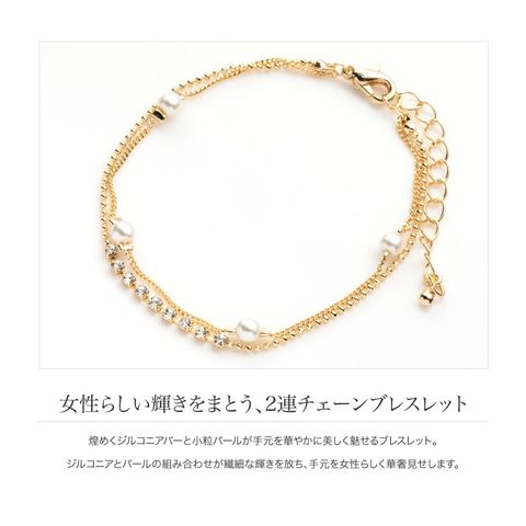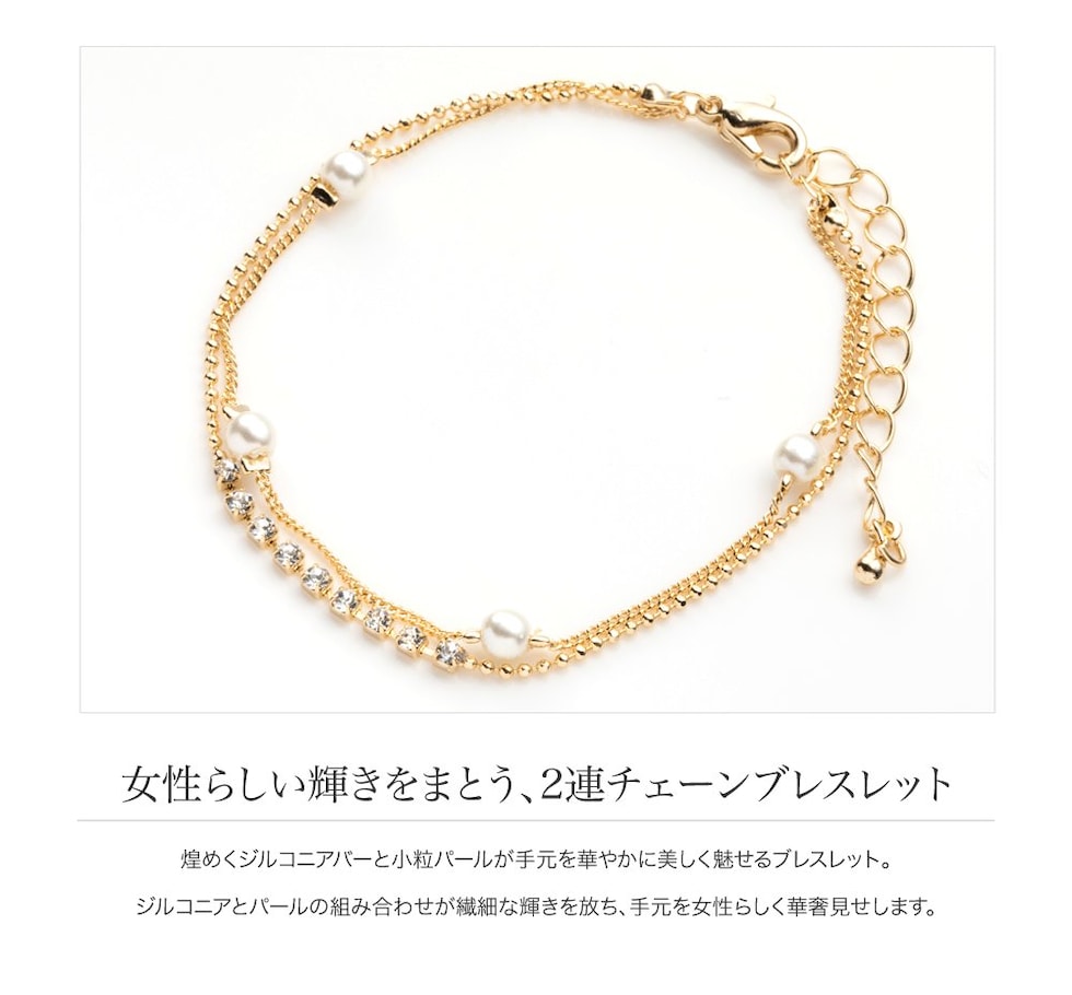 ブレスレット レディース 2連 チェーン ジルコニアバー 小粒 パール アクセサリー cream dot ゆうパケット [ゴールド_ワンサイズ]