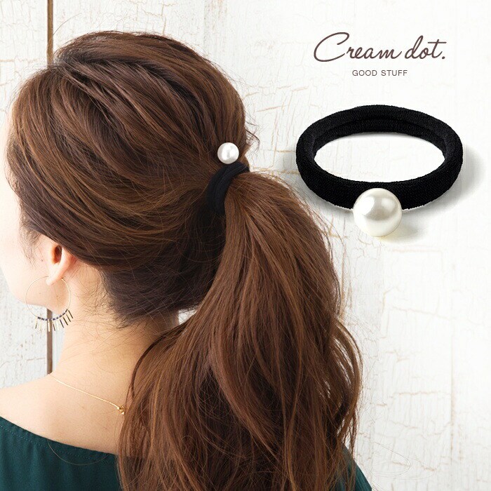 ヘアアクセサリー レディース ヘアゴム パール かんたん こなれ 小物 ファッション雑貨 式 cream dot ゆうパケット [ブラック_ワンサイズ]
