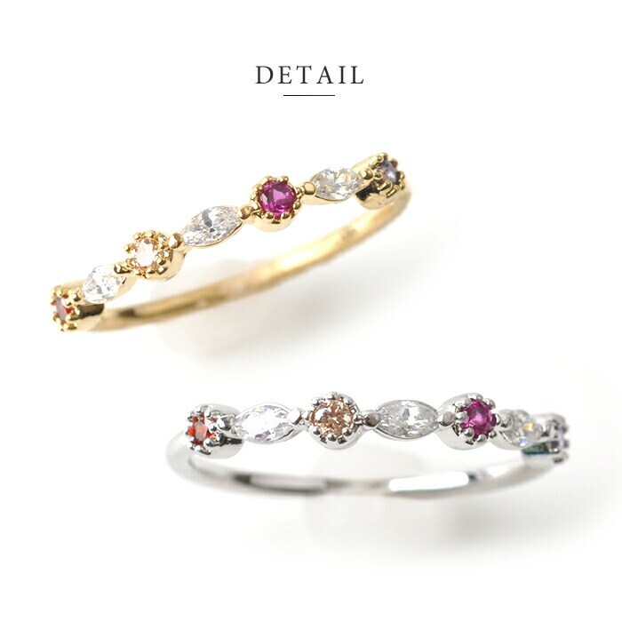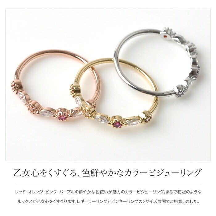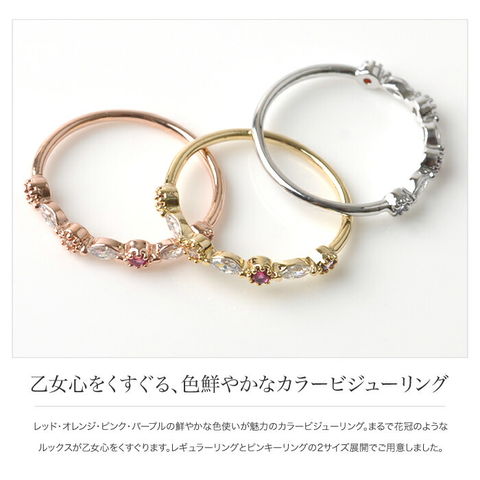レッド・オレンジ・ピンク・パープルの鮮やかな色使いが魅力のカラービジューリング。