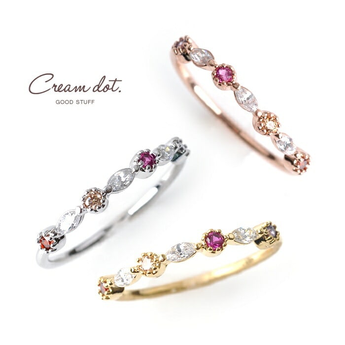 リング 指輪 レディース アクセサリー ピンキーリング 花冠 ジルコニア CZリング レギュラーリング cream dot ゆうパケット [シルバー_11号]