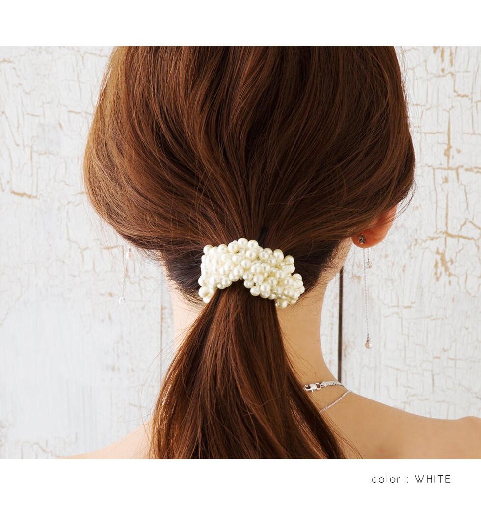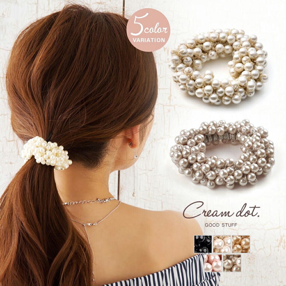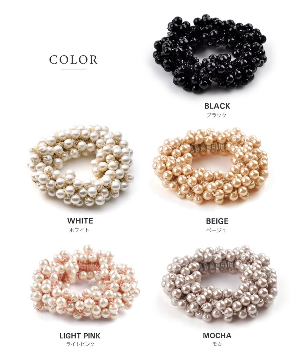 ヘアアクセサリー レディース ヘアゴム シュシュ 髪留め まとめ髪 パール バブルパール ライトピンク モカ cream dot ゆうパケット [モカ_ワンサイズ]