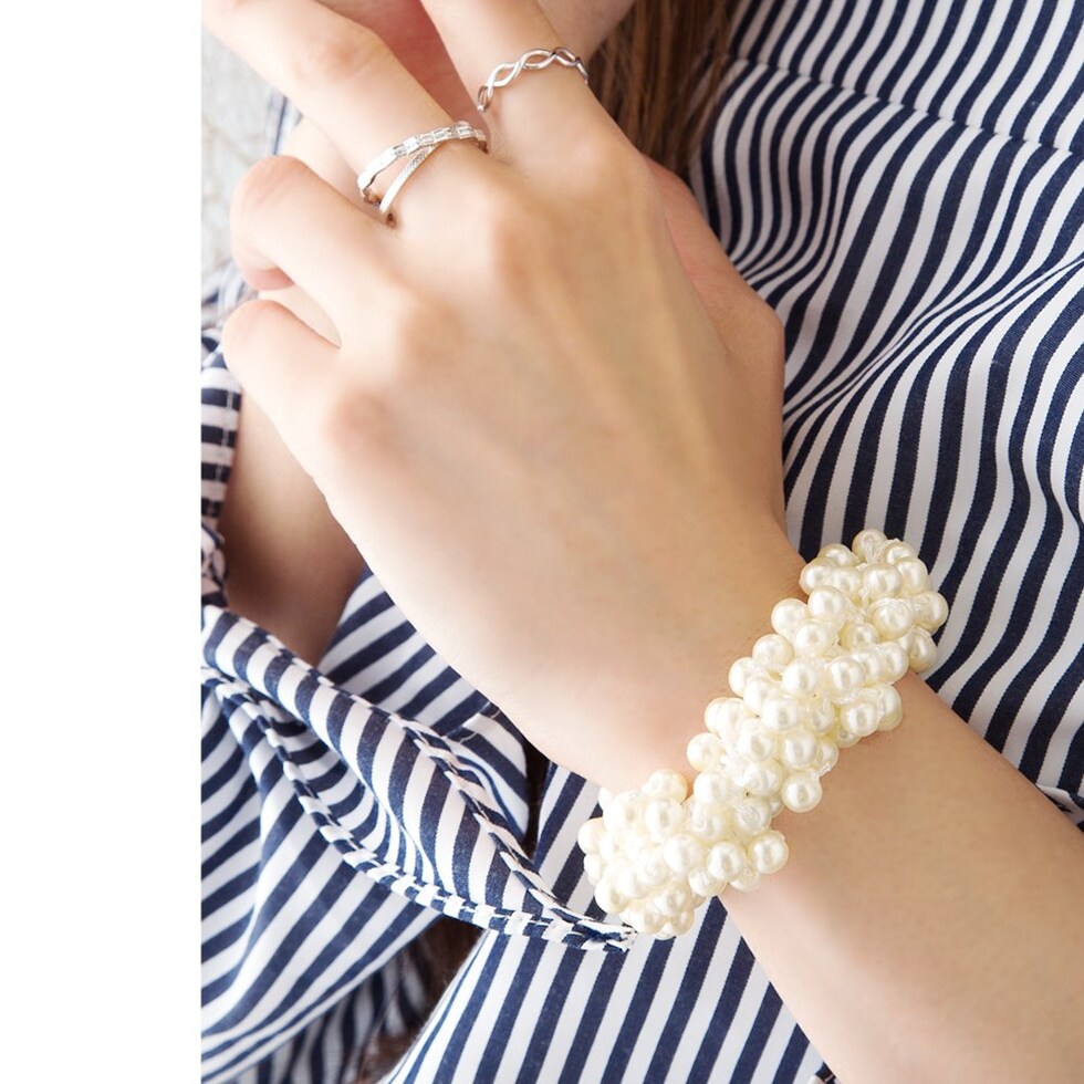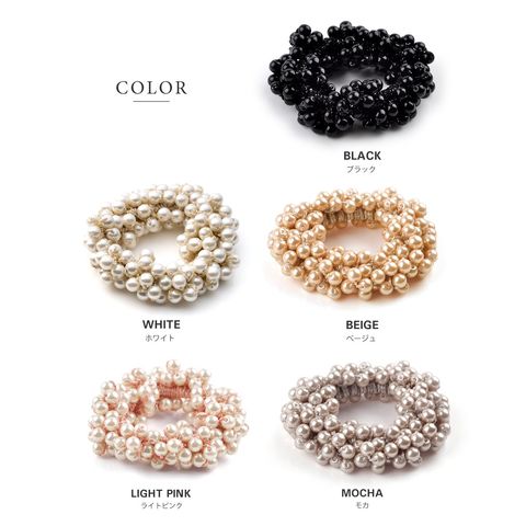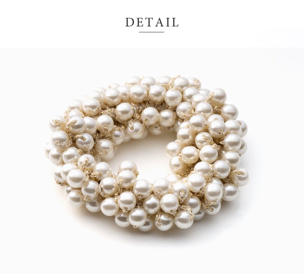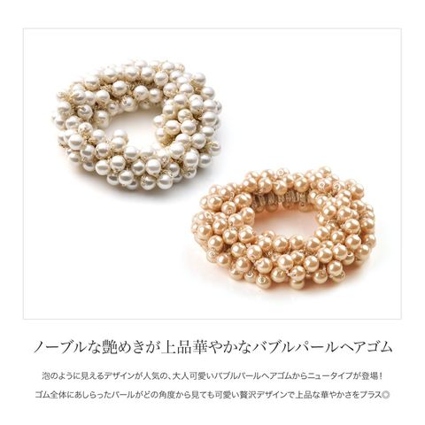 泡のように見えるデザインが人気の、大人可愛いバブルパールヘアゴムからニュータイプが登場!ゴム全体にあしらったパールがどの角度から見ても可愛い贅沢デザインで上品な華やかさをプラス◎