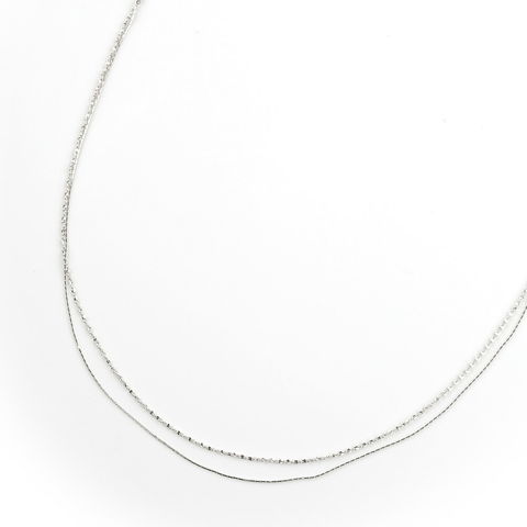 細かく複雑にねじり合ったチェーンがしなやかに輝くベネチアンチェーンと絶妙に絡み合い、キラキラと星のように眩い輝きを放ちます。