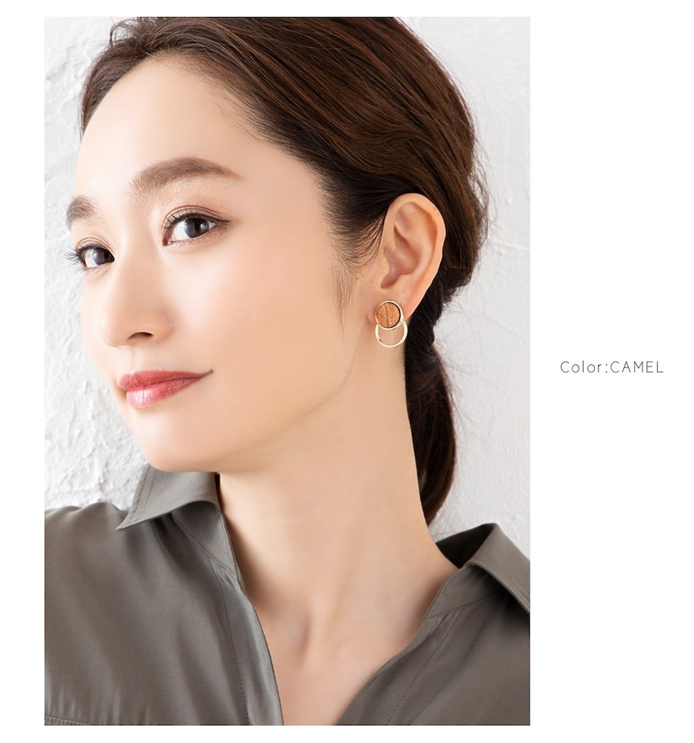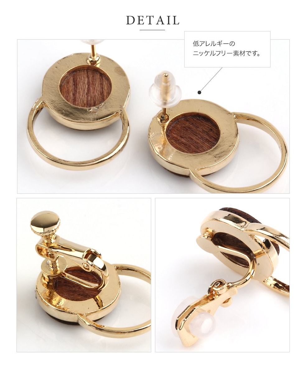 魅力的なウッドを組み合わせたピアス/イヤリング。