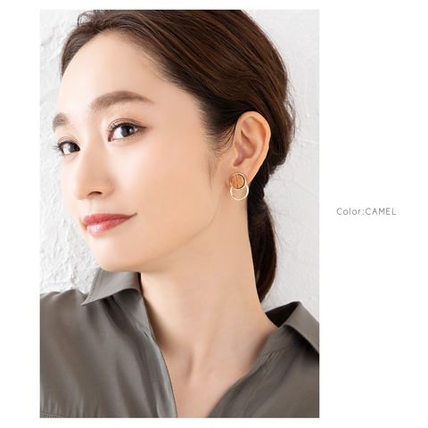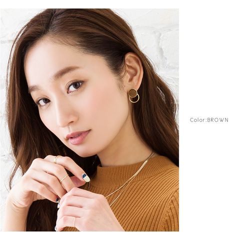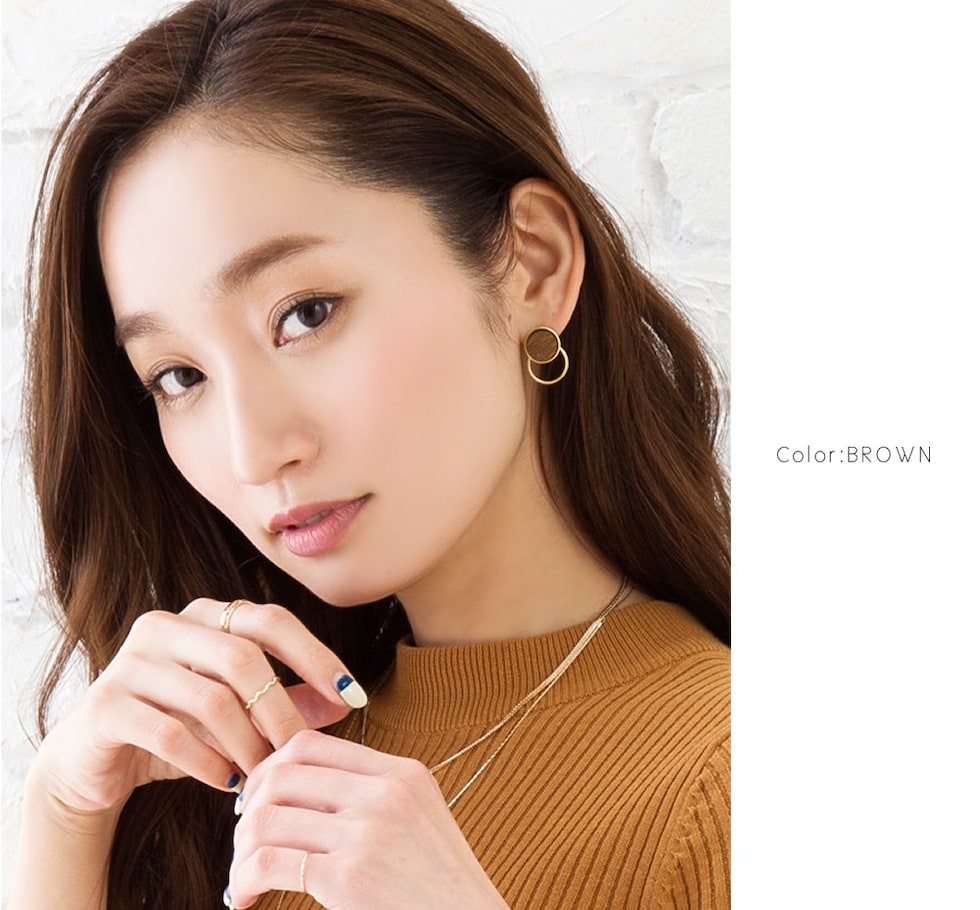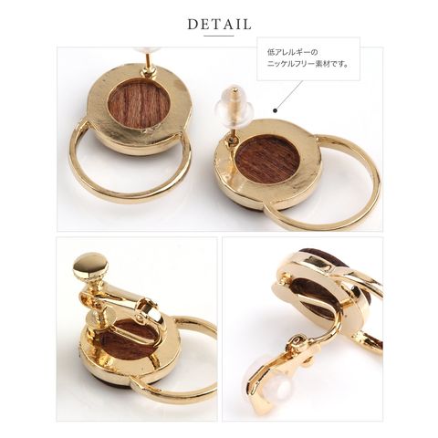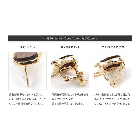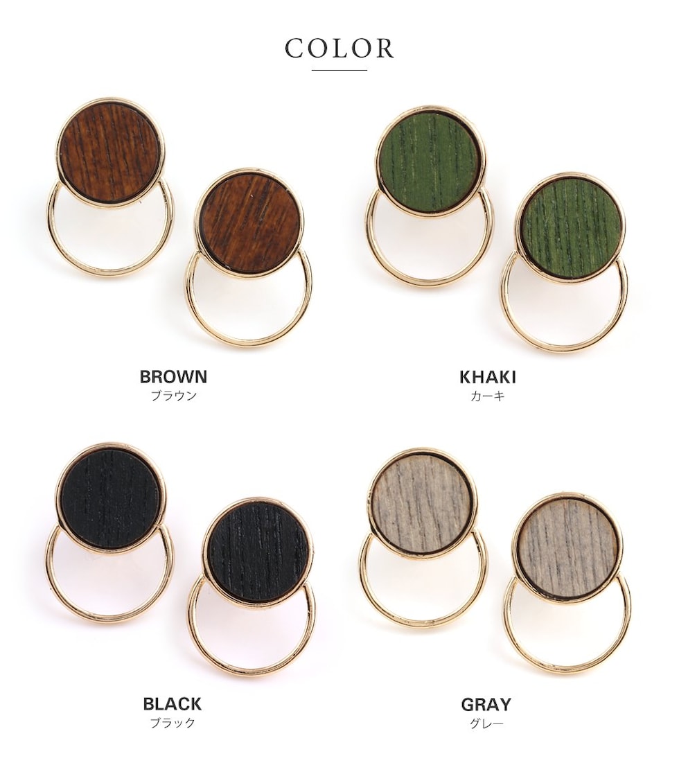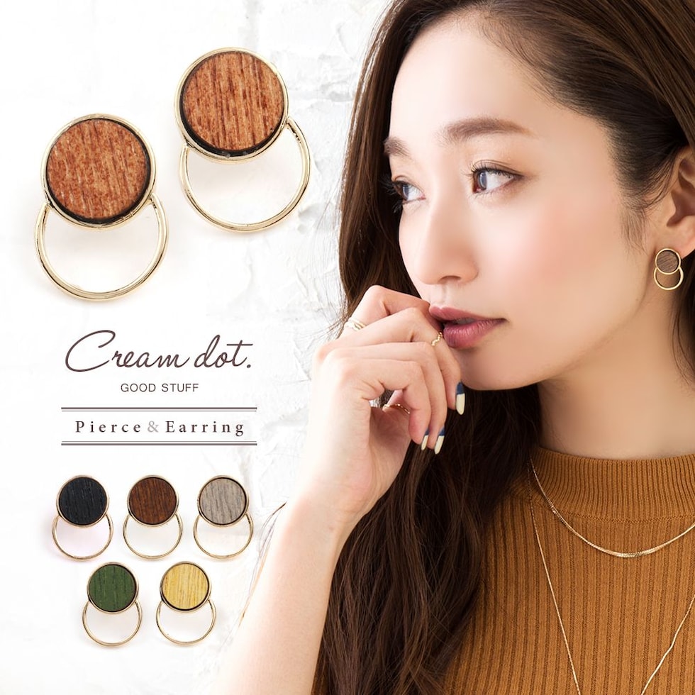 ピアス イヤリング レディース ネジ式 クリップ式 スタッド ウッド 木 カーキ cream dot ゆうパケット [ブラウン_ピアス]