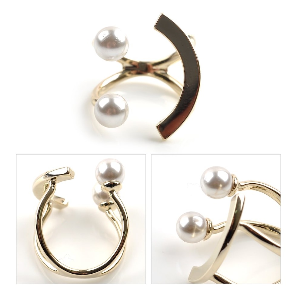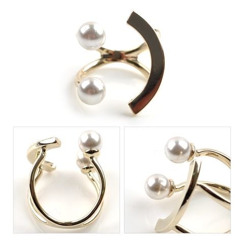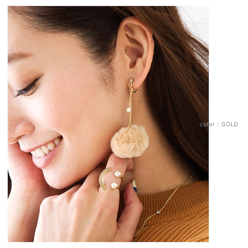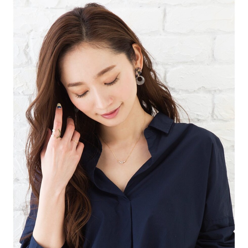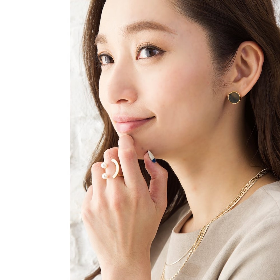 パールとカーブしたゴールドバーを組み合わせた技ありデザインのフォークリング。着用するとスマイルのように見えるキャッチーなシルエットが大人の遊びゴコロをくすぐるアイテムです。