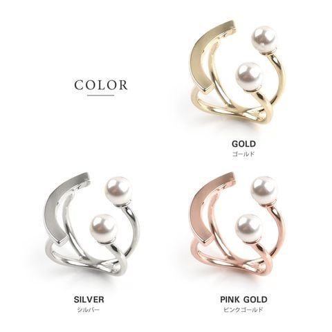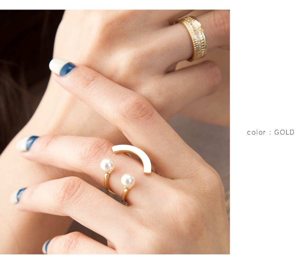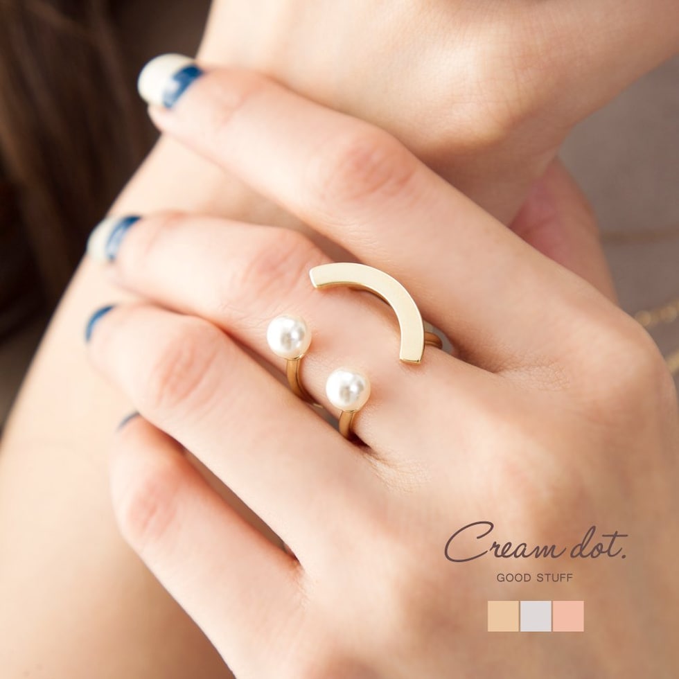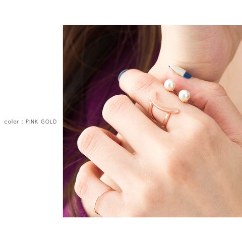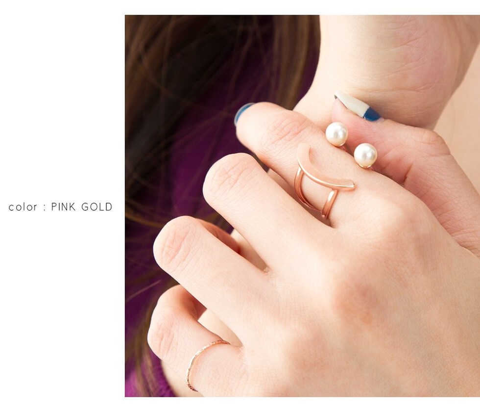 リング 指輪 レディース フリーサイズ パール スマイルリング メタル バー サイズ調整 調節 cream dot ゆうパケット [ピンクゴールド_フリーサイズ]